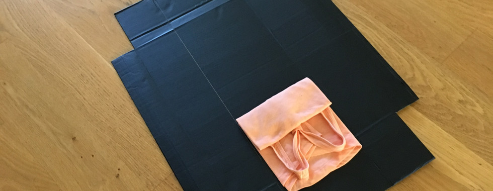 1 Stück Karton - ungefähr quadratische, Höhe und Breite entsprechen in etwa der Länge der Oberteile, die du zusammenlegen willst.